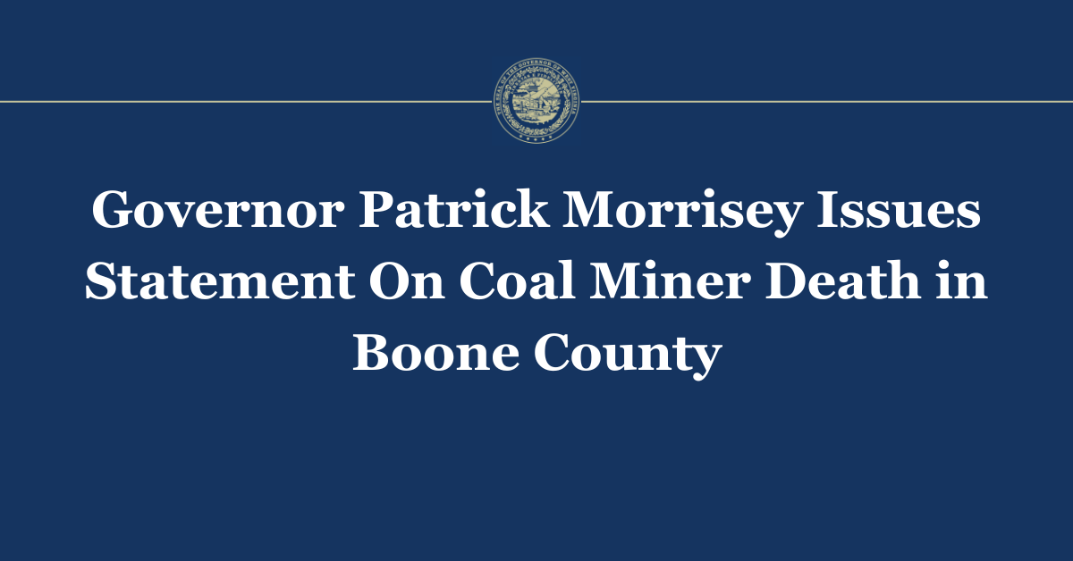 GOVERNOR PATRICK MORRISEY ISSUES STATEMENT ON COAL MINER DEATH IN BOONE COUNTY