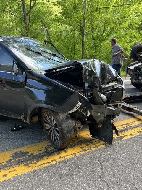 Grantsville Volunteer Fire Department was dispatched at 3:55 p.m. to Route 5 West between Big Root Road and Carroll Road. Mark Fugett II was traveling east when his right front tire sidewall blew out pulling him over the hill where he struck a tree. Trooper Josh Richards was the investigating officer.
