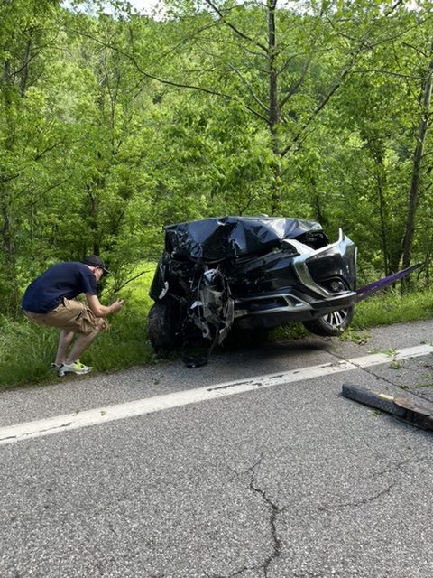 Mr. Fugett received no injuries but his 2019 Mitsubishi Outlander sustained a great deal of damage.
