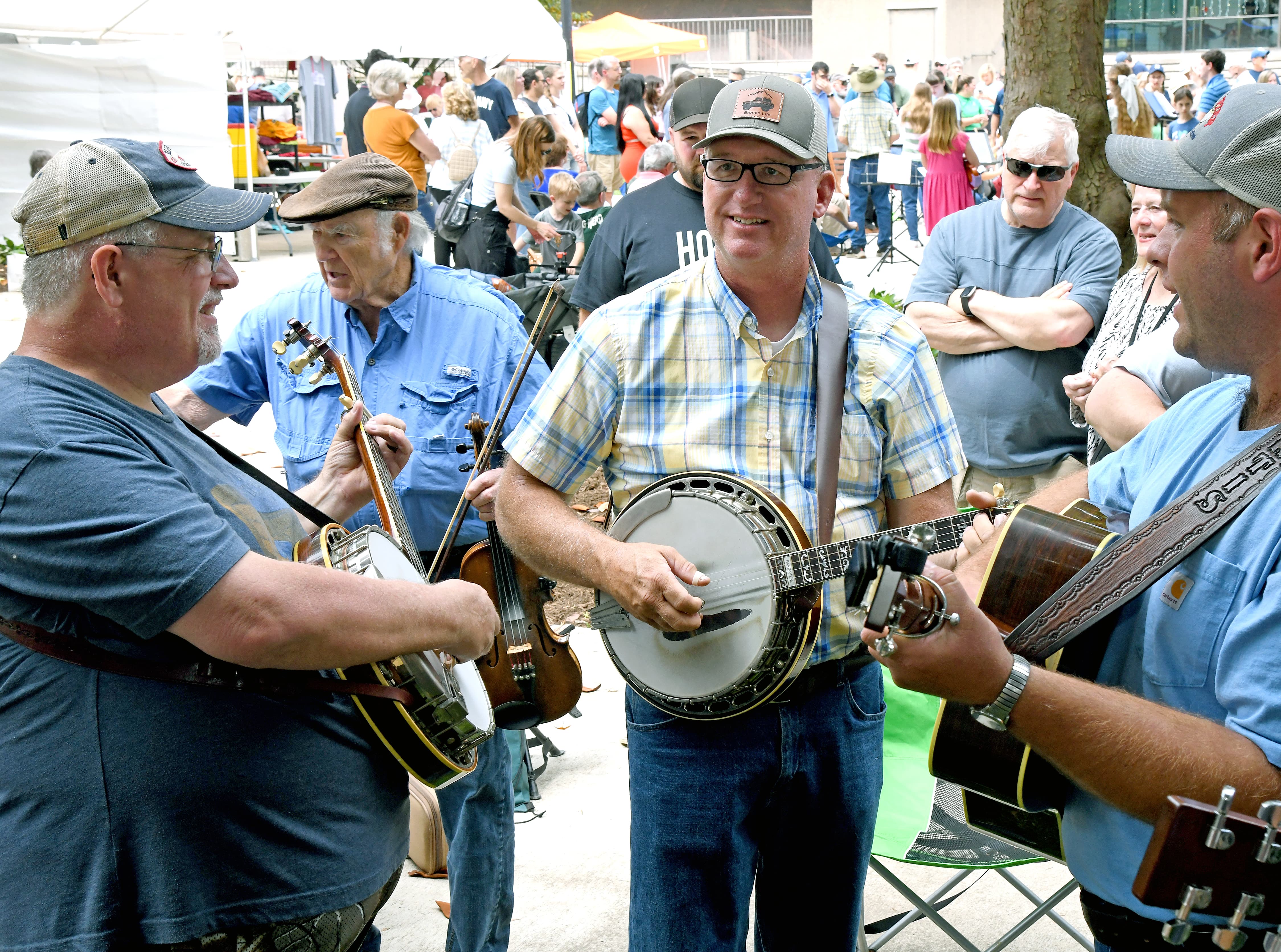 Outside activities begin on Saturday at 10:30 a.m. Events include old-time fiddle, bluegrass banjo, and mandolin contests, with half-hour concerts throughout the day. Sunday’s events begin at 10:30 a.m. with a one-hour gospel set by Angie Richardson at 11 a.m., followed by old-time banjo, lap dulcimer, and flat-pick guitar contests, and more half-hour concerts by local West Virginia musicians. The fiddle and guitar competitions have a youth category for musicians 15 years of age or younger. Traditional dance offerings range from demonstrations of ethnic and square dancing to flat-foot dancing in the Great Hall of the Culture Center where spectators are encouraged to jump in and kick up their heels.