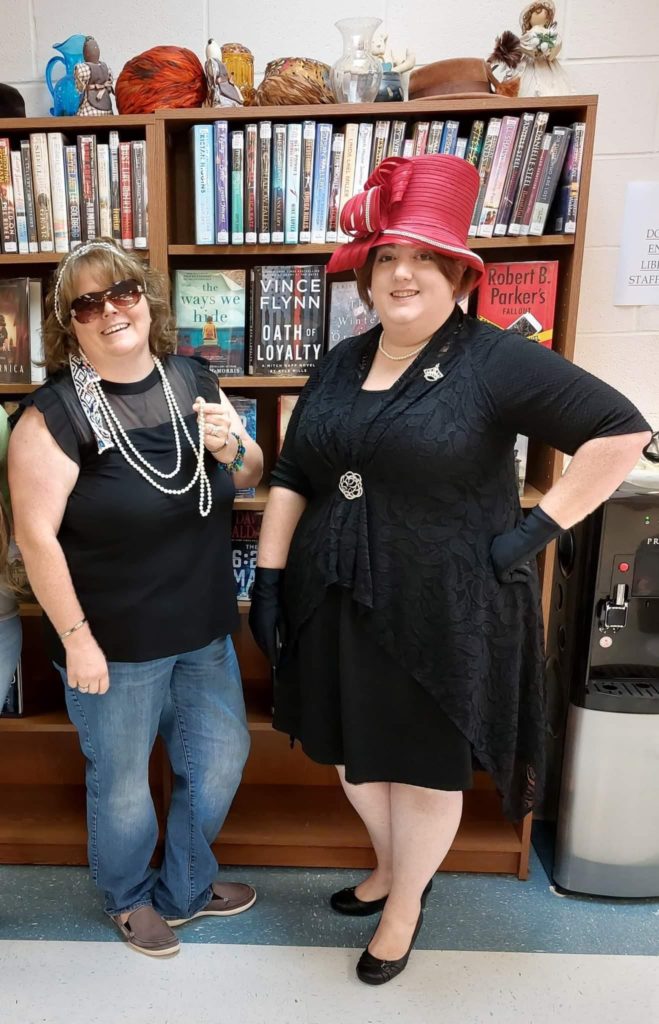 Amy Norman and Caitlyn Weaver, Calhoun County Library Staff, dressed for success on Monday in support of the Calhoun Middle High School Spirit week theme ”Millionaire Monday.” Today’s theme is ”Better Together!” with youth and businesses encouraged to dress as something that goes well together.