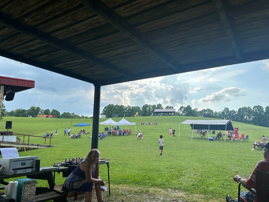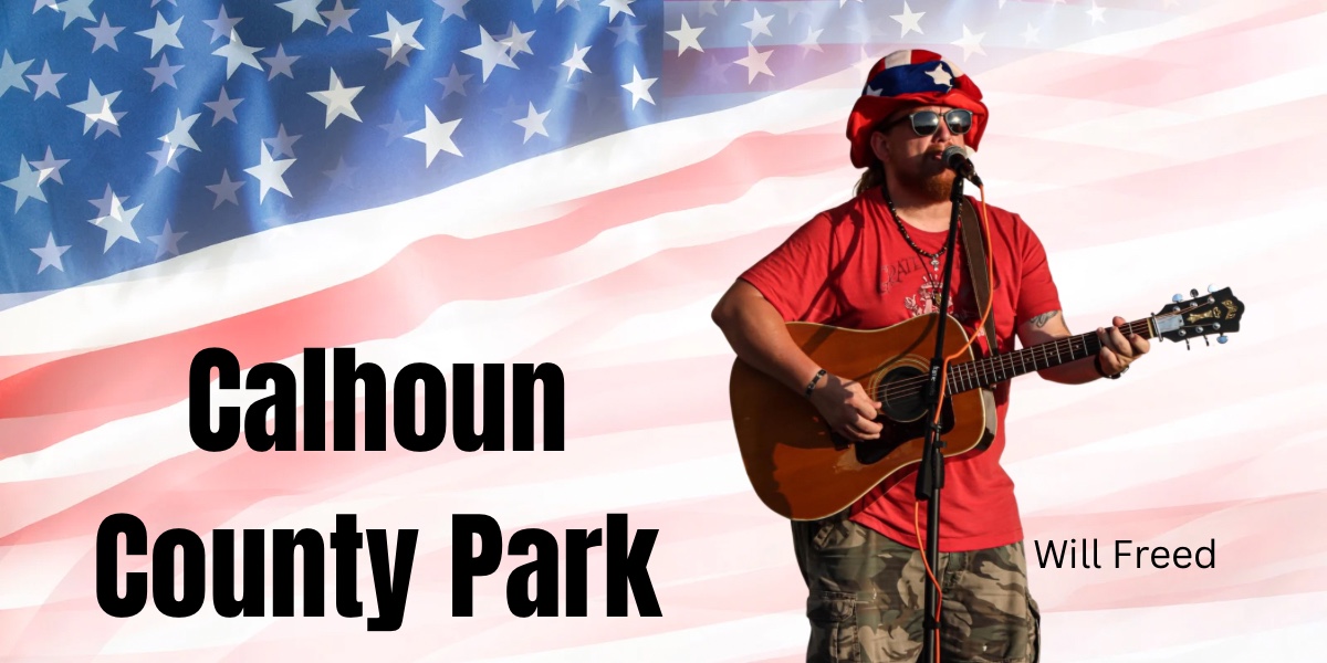 Calhoun County Park lit up the skies in celebration of Independence Day at their annual July 4th event. Will Freed, Bruce Jones and John Richards filled the air with sounds of multiple genre’s of music by Calhoun’s (past and present) talented trio. The hillside was scattered with families, many who set through a few heavy, but brief down pours to listen while many of the children bounced to their heart’s content in Bouncy Houses at the top of the Ridge.