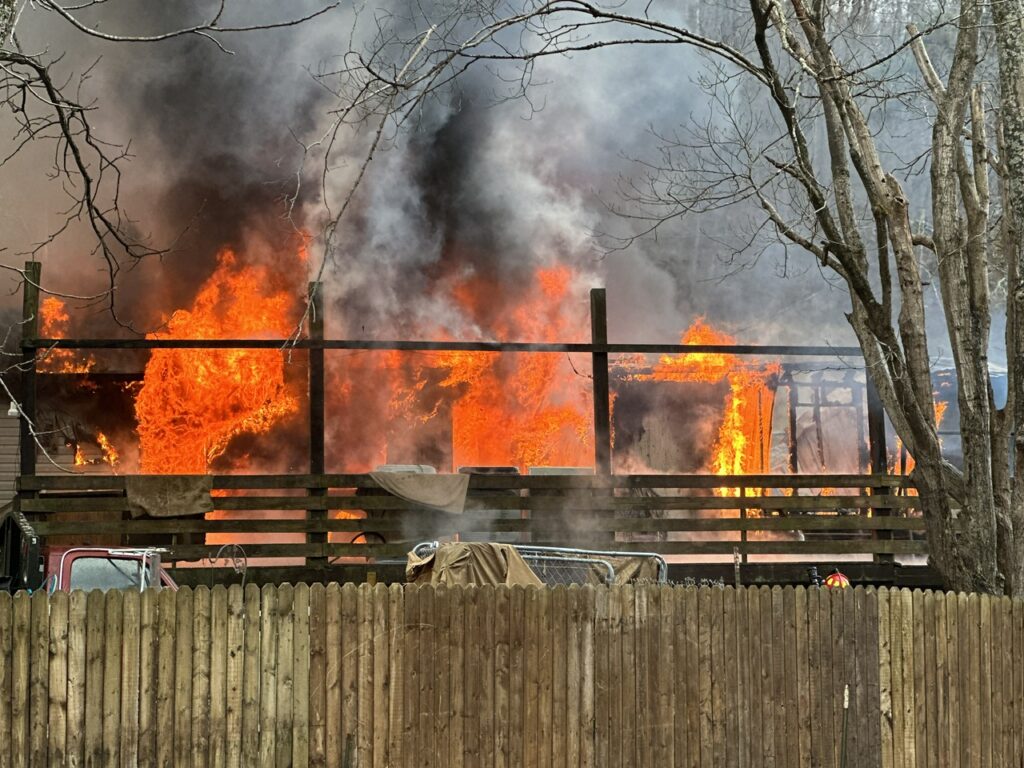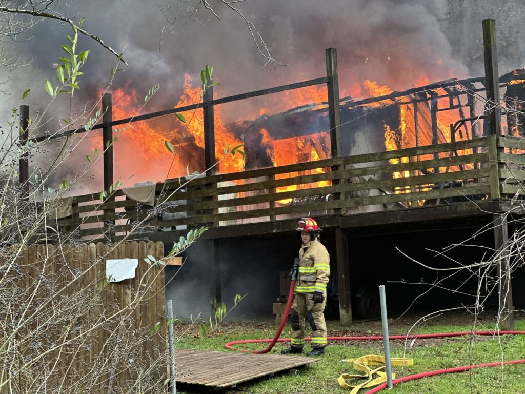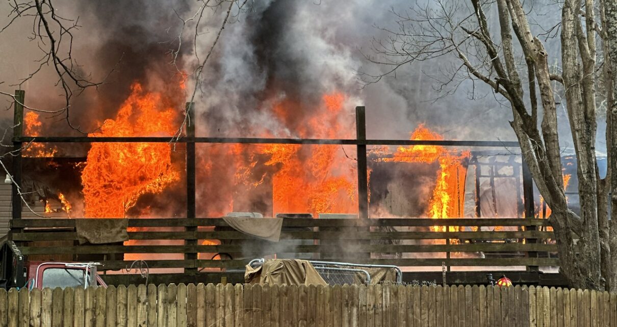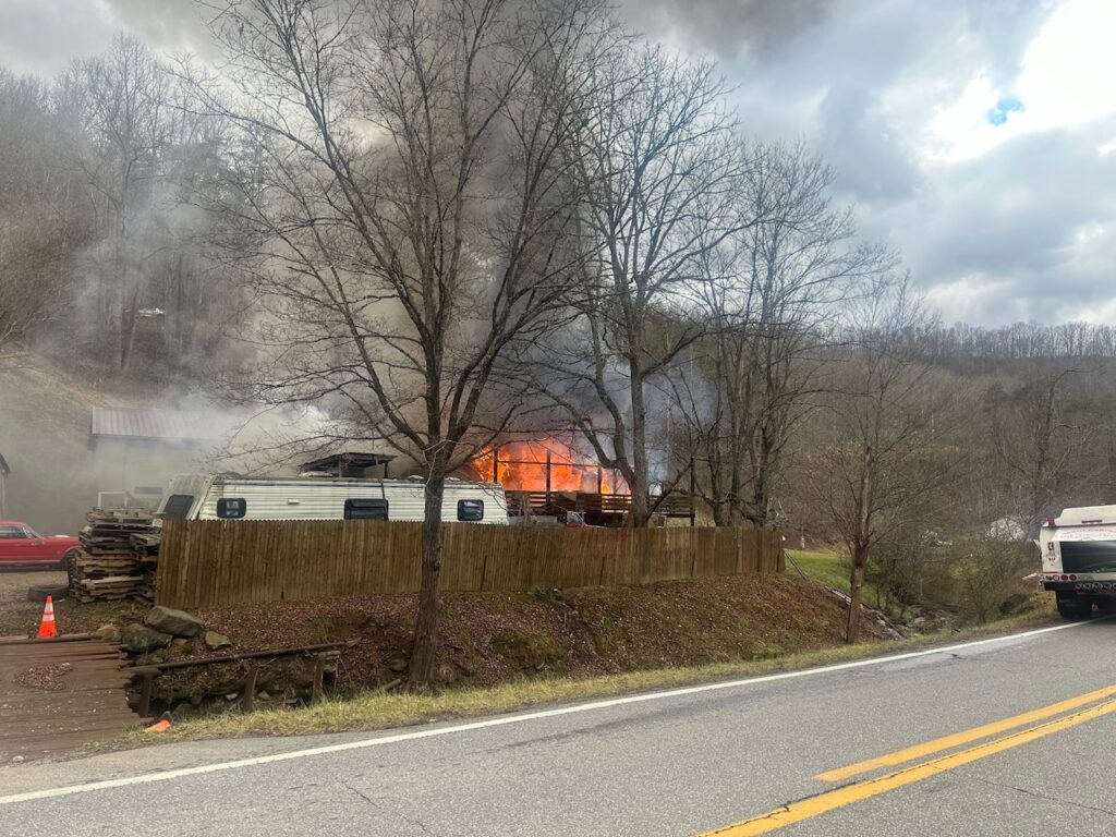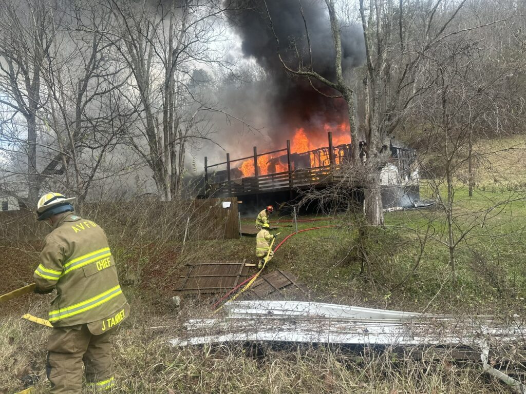 Tony McCune and Melissa West were still in bed when they awoke to discover their house was on fire around 1:30 p.m. January 4, 2024. The modular home was quickly and fully engulfed by the time that Arnoldsburg Volunteer Fire Department was on scene. The McCune was located just west of Liberty on 33/119. With the structure being across the creek fire crews had to maneuver up and down the steep creek banks and string fire hose across the creek to be able to fight the fire.