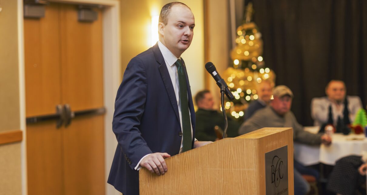 Above photo: State Senator Ben Queen addresses supporters Tuesday night at the Bridgeport Conference Center, where he announced he will seek reelection to the West Virginia State Senate.