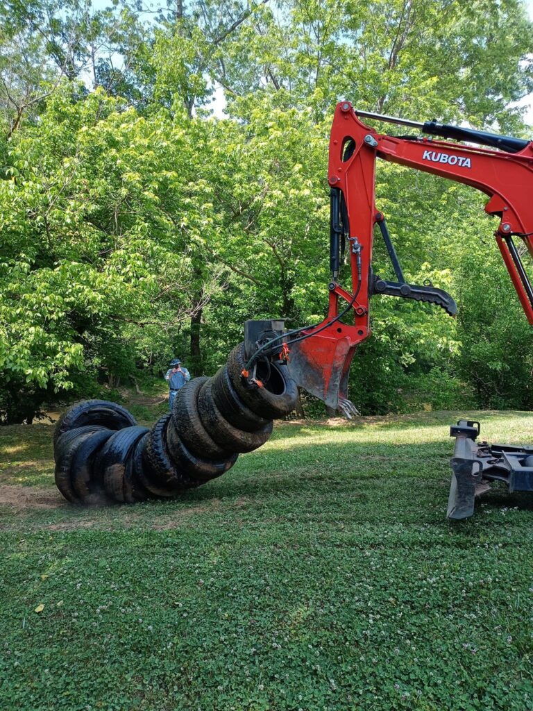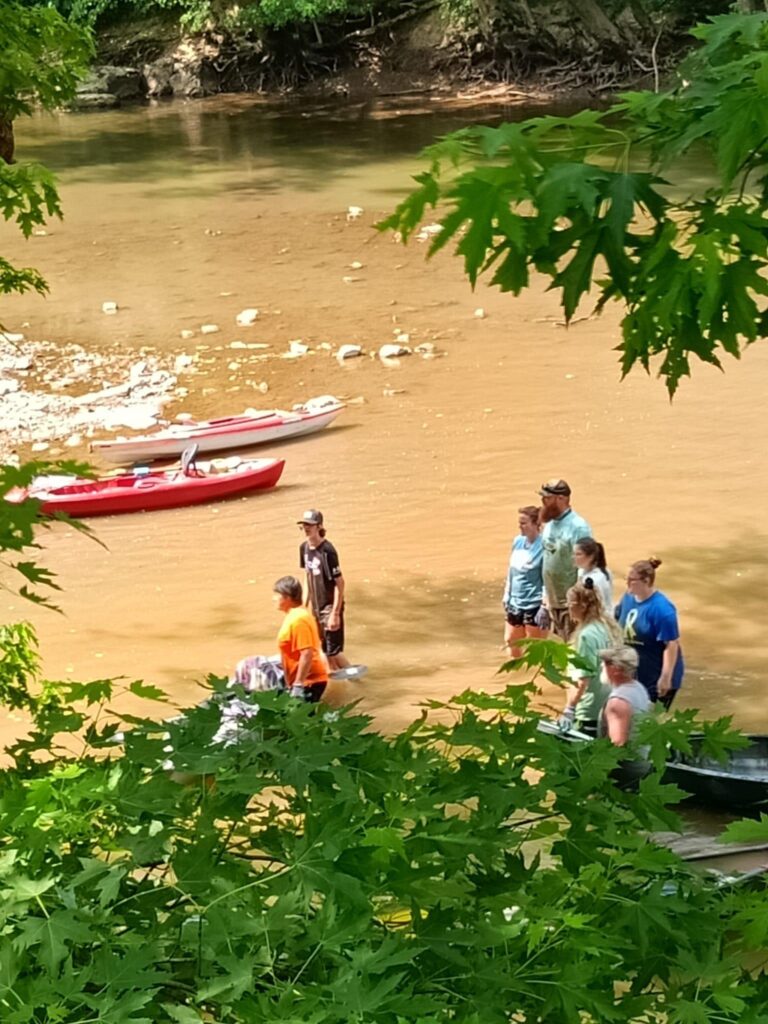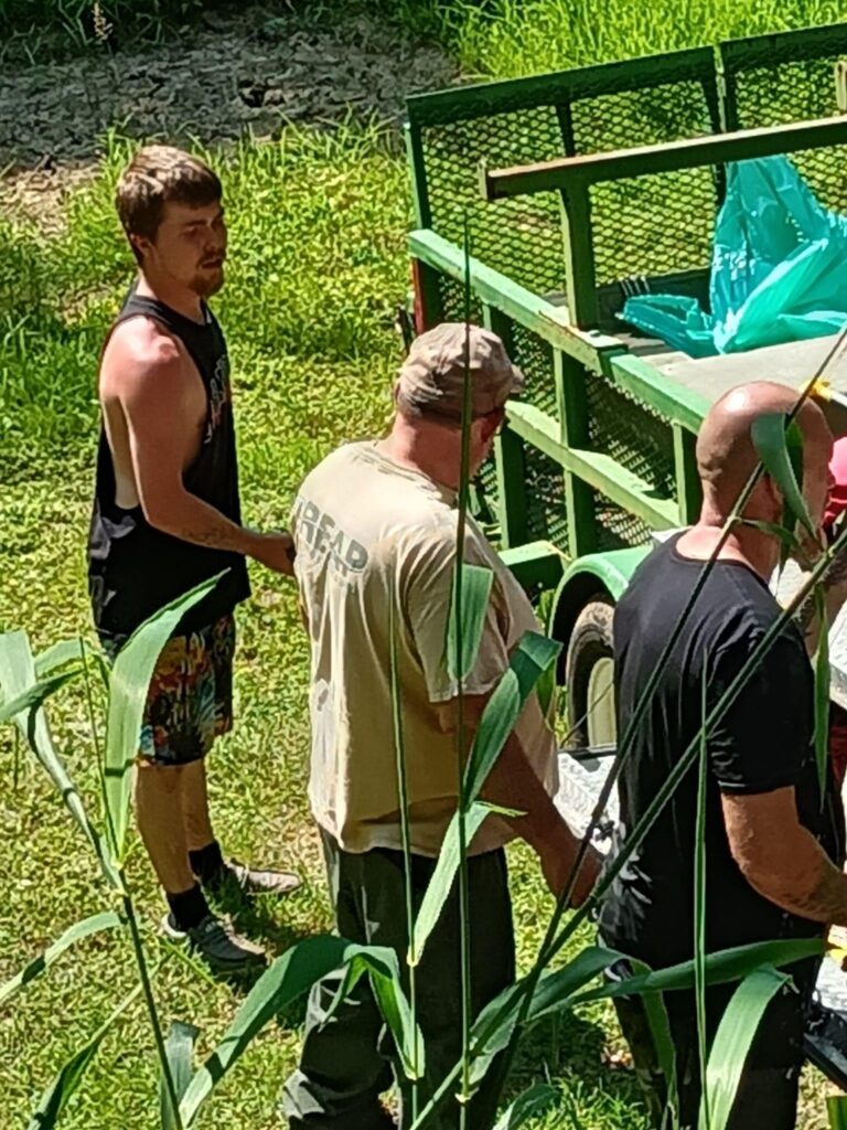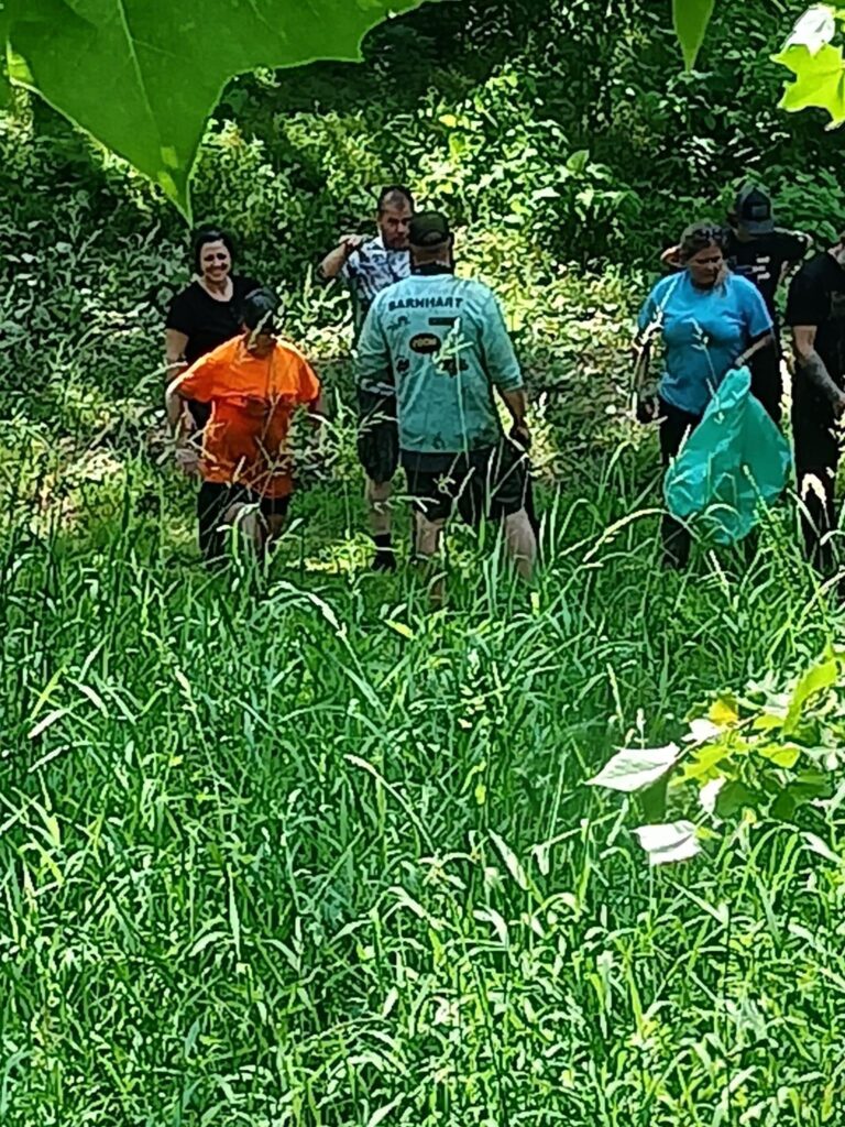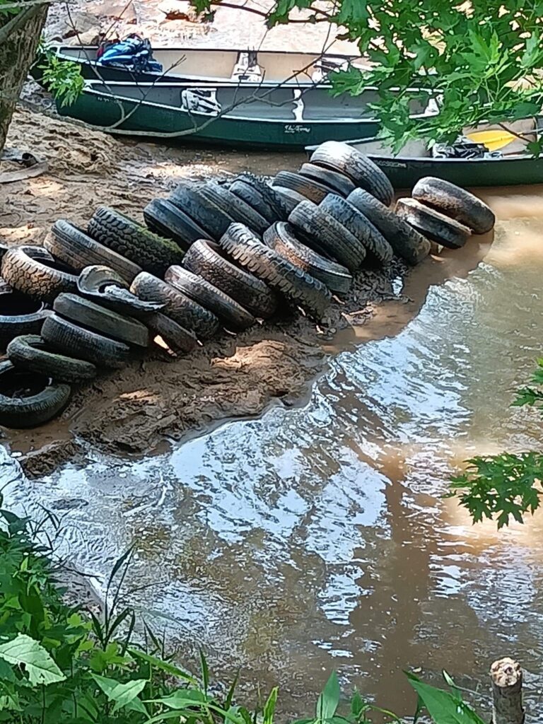 A collaboration between Cabot Station Recycling Center, WVDEP-REAP and community volunteers on Saturday, June 10th, 2023 netted 300 tires from the Little Kanawha River . Thirty volunteers trekked three miles along the banks and through the water to collect tires that had been discarded into River.