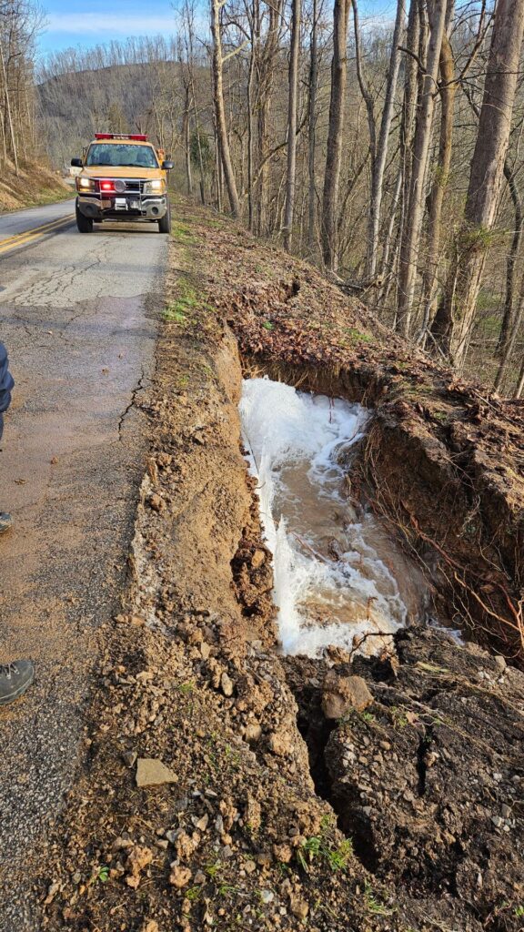 A water leak has created the need for the Grantsville Volunteer Fire Department to be called out for traffic control and the water company repairing a leak. The leak also caused mud, rock and debris slides so please proceed with caution along that stretch of roadway.
